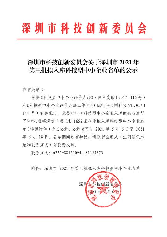 深圳市2021年第3批擬入庫科技型中小企業名單公示企業清單.pdf