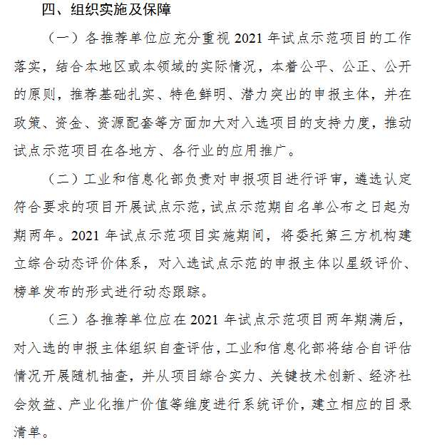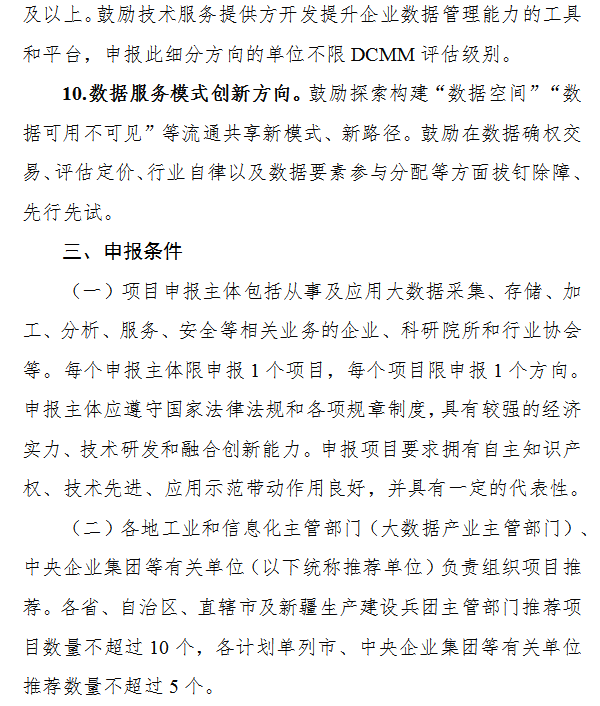 (二)推薦單位。各地工業和信息化主管部門(大數據產業主管部門)、中央企業集團等有關單位負責組織推薦,并于2021年3月14日前登錄申報系統確認推薦名單。
