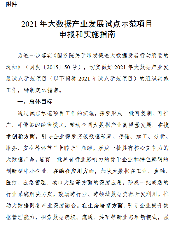 附件:2021年大數據產業發展試點示范項目申報和實施指南.doc