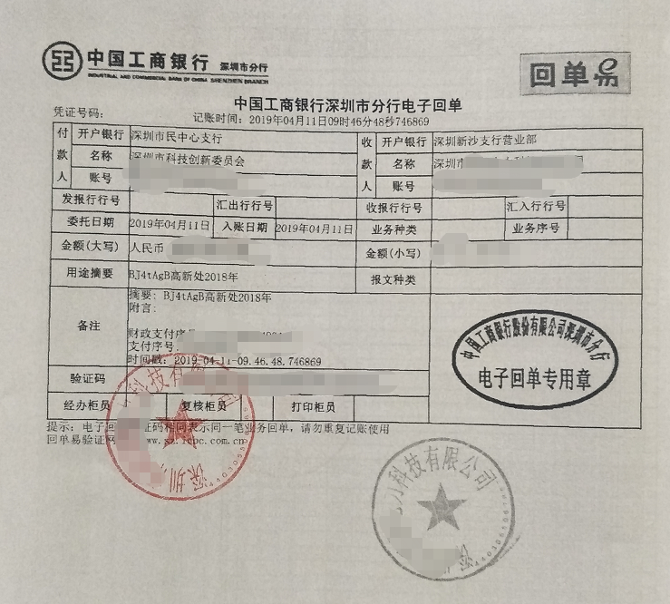 (三)深圳市科技創新委2019年研究開發資助計劃資助款到賬憑證復印件(無需驗原件);