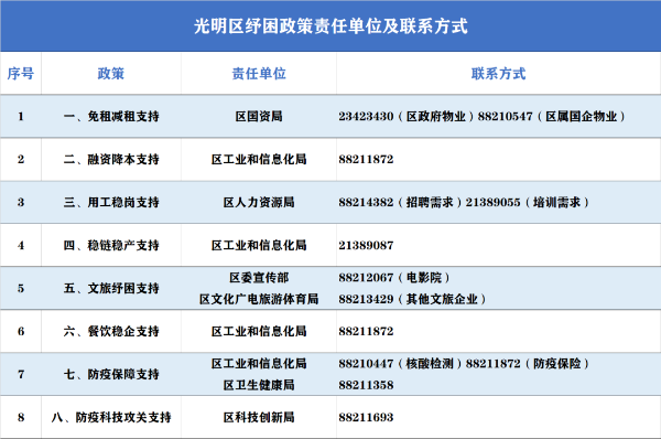 為深入貫徹落實(shí)國(guó)家、省、市決策部署和《深圳市關(guān)于應(yīng)對(duì)新冠肺炎疫情進(jìn)一步幫助市場(chǎng)主體紓困解難若干措施》,統(tǒng)籌做好疫情防控和經(jīng)濟(jì)社會(huì)發(fā)展,支持市場(chǎng)主體積極應(yīng)對(duì)疫情,進(jìn)一步幫助市場(chǎng)主體紓困解難,結(jié)合光明區(qū)實(shí)際,制定本補(bǔ)充措施。 一、免租減租支持 1.制造業(yè)小微企業(yè)、服務(wù)業(yè)小微企業(yè)和個(gè)體工商戶承租區(qū)政府以及區(qū)屬獨(dú)資、全資、絕對(duì)控股國(guó)有企業(yè)的房屋,免除3個(gè)月租金、再減半收取3個(gè)月租金。(責(zé)任單位:區(qū)國(guó)資局、區(qū)科技創(chuàng)新局、區(qū)住房建設(shè)局、區(qū)文化廣電旅游體育局、區(qū)教育局、各街道) 二、融資降本支持 2.對(duì)轄區(qū)中小微企業(yè)在2022年4月1日至6月30日期間獲得的新增貸款(展期視同新增),按實(shí)際支付利息的20%給予貼息支持,貼息期限不超過(guò)6個(gè)月,單家企業(yè)最高10萬(wàn)元。(責(zé)任單位:區(qū)工業(yè)和信息化局) 三、用工穩(wěn)崗支持 3.對(duì)受疫情影響招工困難的企業(yè),每月提供校企對(duì)接、招工引才對(duì)接、勞務(wù)輸出地招聘、線上招聘、校園招聘等服務(wù);對(duì)有培訓(xùn)需求的企業(yè),提供“送培訓(xùn)進(jìn)企業(yè)”“云課程”等訂單式公益培訓(xùn)。(責(zé)任單位:區(qū)人力資源局) 四、穩(wěn)鏈穩(wěn)產(chǎn)支持 4.依托光明區(qū)企業(yè)服務(wù)門(mén)戶建立企業(yè)紓困訴求快速響應(yīng)機(jī)制,多部門(mén)聯(lián)動(dòng)協(xié)調(diào)解決企業(yè)供應(yīng)鏈堵點(diǎn)問(wèn)題,保障重點(diǎn)企業(yè)產(chǎn)業(yè)鏈、供應(yīng)鏈暢通運(yùn)轉(zhuǎn)。(責(zé)任單位:區(qū)工業(yè)和信息化局) 5.對(duì)轄區(qū)大型工業(yè)企業(yè)積極擴(kuò)大對(duì)轄區(qū)中小微工業(yè)企業(yè)采購(gòu)規(guī)模的,按照其2022年4月1日至6月30日期間采購(gòu)金額同比新增部分給予一定獎(jiǎng)勵(lì),單家企業(yè)最高50萬(wàn)元。(責(zé)任單位:區(qū)工業(yè)和信息化局) 6.對(duì)在政策有效期內(nèi)新納入全國(guó)大型制造業(yè)企業(yè)供應(yīng)鏈體系的中小微企業(yè),按照其在2022年4月1日至6月30日期間向全國(guó)大型制造業(yè)企業(yè)供貨金額予以一定獎(jiǎng)勵(lì),單家企業(yè)最高50萬(wàn)元。(責(zé)任單位:區(qū)工業(yè)和信息化局) 五、文旅紓困支持 7.對(duì)主動(dòng)配合疫情防控、在條件具備時(shí)恢復(fù)經(jīng)營(yíng)的景點(diǎn)景區(qū)、旅行社,按照其在2022年4月1日至6月30日期間營(yíng)業(yè)額予以一定支持,最高20萬(wàn)元。(責(zé)任單位:區(qū)文化廣電旅游體育局) 8.對(duì)主動(dòng)配合疫情防控、在條件具備時(shí)恢復(fù)經(jīng)營(yíng)的電影院、劇院等文化經(jīng)營(yíng)場(chǎng)所,按照其2022年4月1日至6月30日期間實(shí)際支付租金總額的20%給予支持,最高20萬(wàn)元(已享受第一條免租減租政策的除外)。(責(zé)任單位:區(qū)委宣傳部、區(qū)文化廣電旅游體育局) 六、餐飲穩(wěn)企支持 9.對(duì)主動(dòng)配合疫情防控、在條件具備時(shí)恢復(fù)經(jīng)營(yíng)的限上餐飲企業(yè),按照其在2022年4月1日至6月30日期間營(yíng)業(yè)額予以一定補(bǔ)貼,單家企業(yè)最高20萬(wàn)元。(責(zé)任單位:區(qū)工業(yè)和信息化局) 七、防疫保障支持 10.對(duì)從業(yè)人員超過(guò)500人的企業(yè),定期提供上門(mén)免費(fèi)核酸檢測(cè)服務(wù);對(duì)其它中小微企業(yè),就近提供便利免費(fèi)核酸檢測(cè)服務(wù)。(責(zé)任單位:區(qū)工業(yè)和信息化局、區(qū)衛(wèi)生健康局) 11.支持企業(yè)購(gòu)買(mǎi)防疫保險(xiǎn),增強(qiáng)應(yīng)對(duì)疫情風(fēng)險(xiǎn)能力,對(duì)2022年4月1日至6月30日期間購(gòu)買(mǎi)防疫保險(xiǎn)產(chǎn)品的企業(yè),按照其實(shí)際支付保費(fèi)的50%予以支持,單家企業(yè)最高5萬(wàn)元。(責(zé)任單位:區(qū)工業(yè)和信息化局) 八、防疫科技攻關(guān)支持 12.對(duì)在新冠藥物、檢測(cè)試劑、消殺技術(shù)、臨床救治等疫情防控重點(diǎn)領(lǐng)域開(kāi)展研發(fā)的企業(yè),其產(chǎn)品在2022年4月1日至12月31日期間獲批上市推廣使用的,每個(gè)產(chǎn)品給予最高50萬(wàn)元資助,單家企業(yè)最高100萬(wàn)元。(責(zé)任單位:區(qū)科技創(chuàng)新局) 本政策由光明區(qū)發(fā)展和改革局會(huì)同各責(zé)任單位負(fù)責(zé)解釋。對(duì)國(guó)家、廣東省、深圳市出臺(tái)的相關(guān)支持政策,從其要求全面貫徹落實(shí)。同類(lèi)政策標(biāo)準(zhǔn)不一致的,按照從高不重復(fù)原則最大力度支持企業(yè)發(fā)展。對(duì)需要出臺(tái)申請(qǐng)指南和操作指引的政策,由相關(guān)責(zé)任單位另行加快制定并組織實(shí)施。本措施自發(fā)布之日起實(shí)施,除已有明確期限規(guī)定外,有效期截至2022年6月30日,申請(qǐng)期截至2022年7月15日。